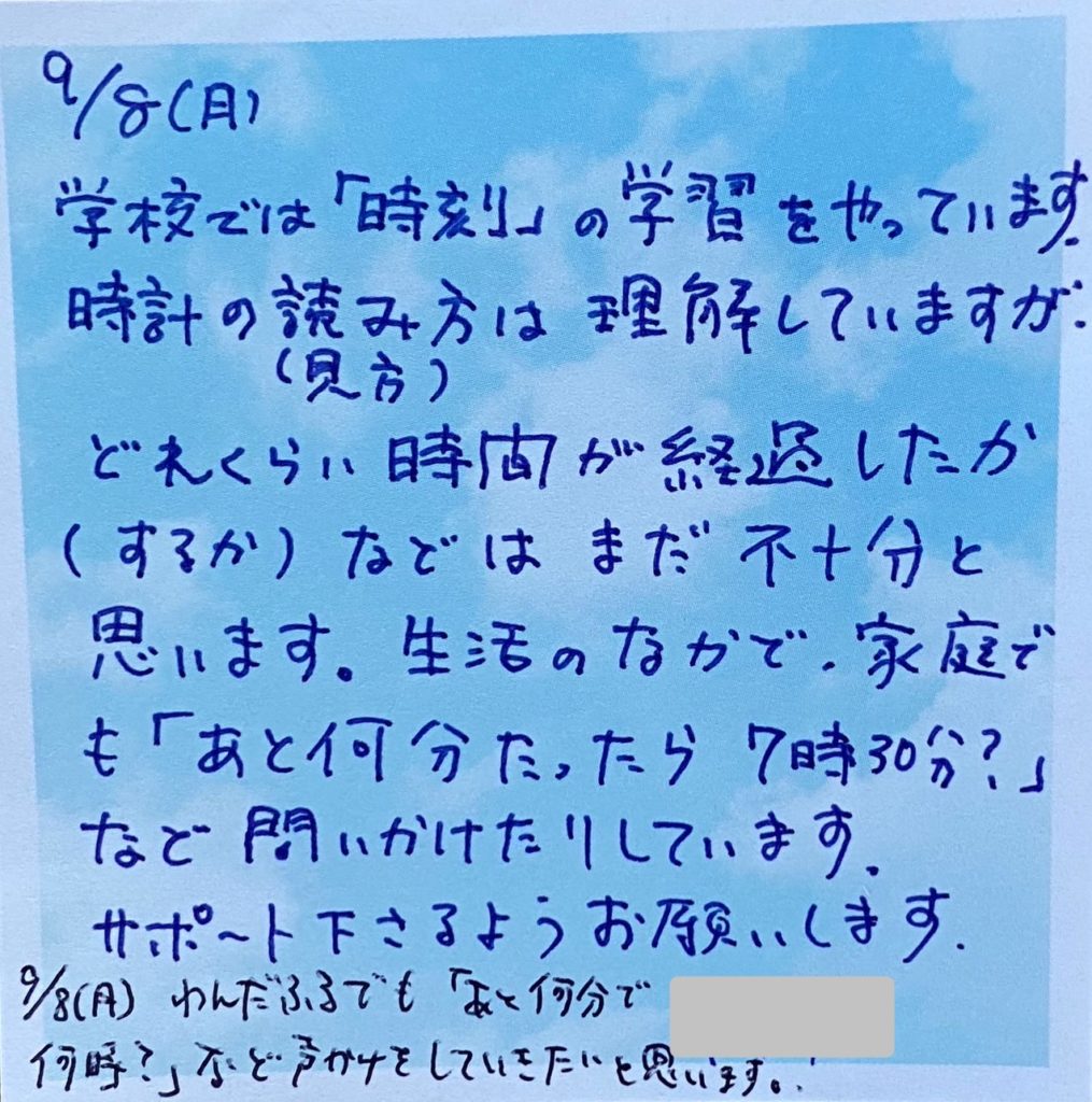 また、児童の学習結果に対して毎回、わんだふるの教職員はコメントを記入しています。この目的はわんだふるの教職員が児童に対して行った学習支援の内容を、保護者、学校の担任教師、それぞれに共有することで、学習支援コンセンサスが醸造(児童の学習能力の向上の為の環境がより良く整備されること)され、結果として児童の学習能力が向上することを狙いとして行なっています。