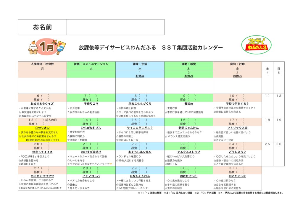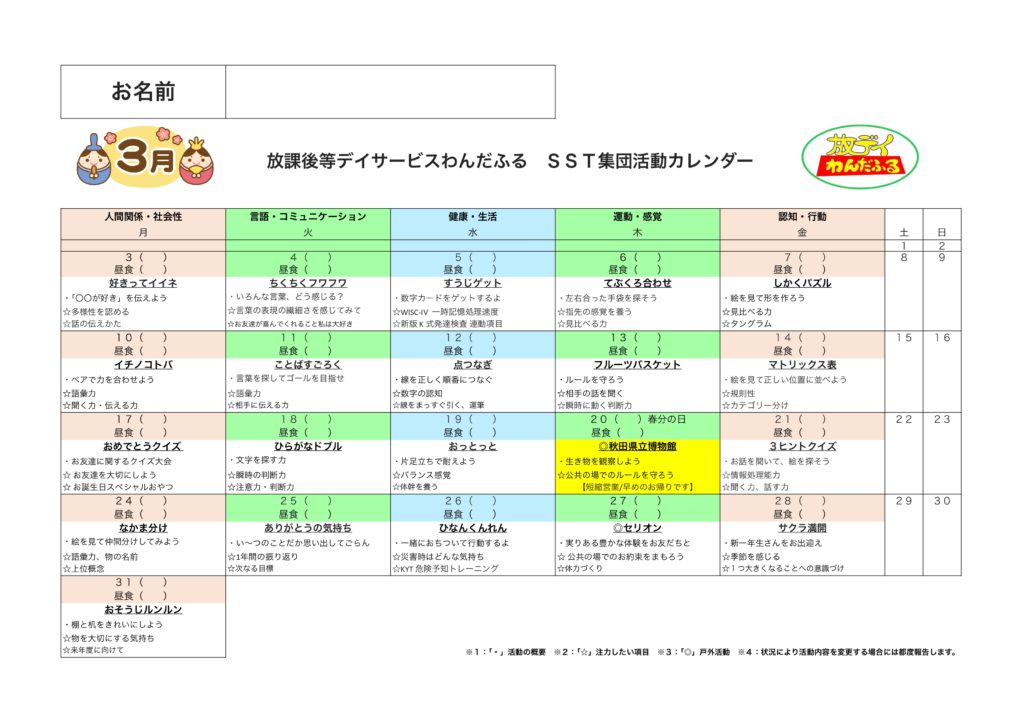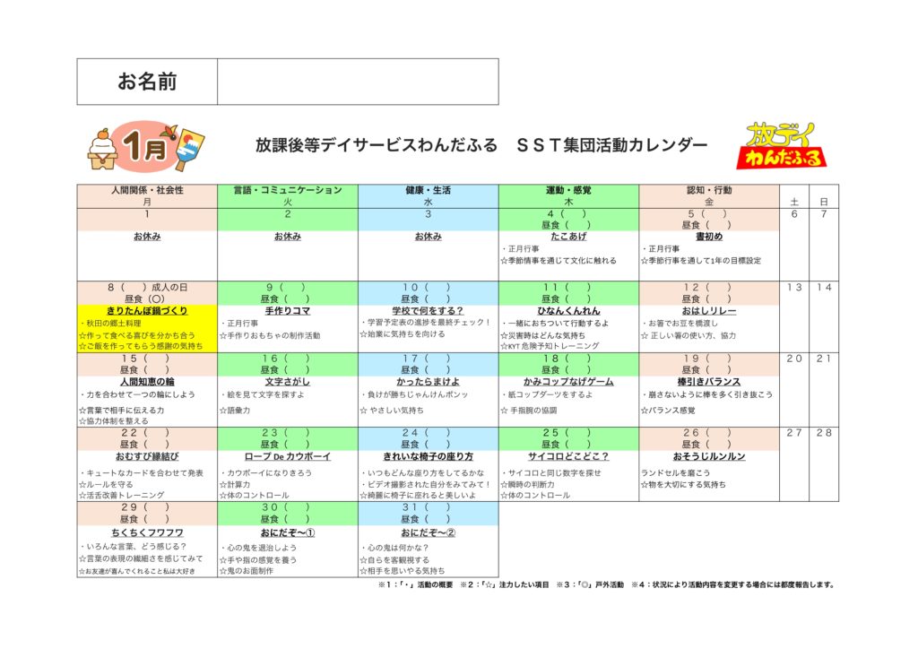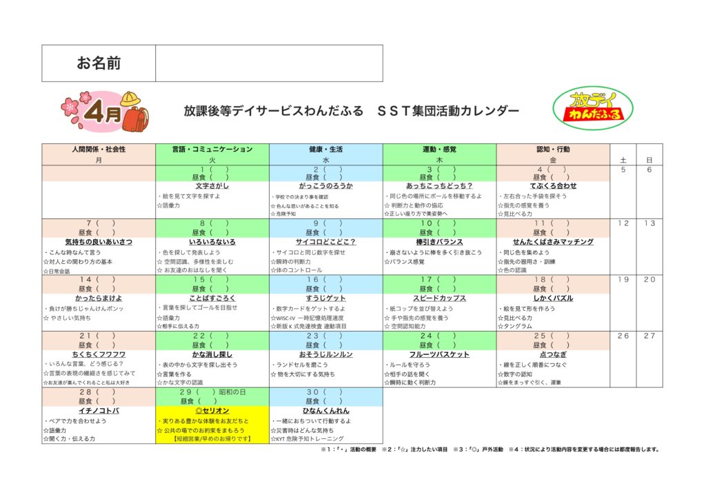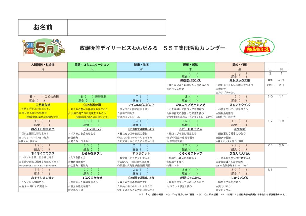 『他の人と一緒にいる場所には、みんなが仲良くするために、お約束があります。その内容を理解しながら、出来るようになっていこうね☺️